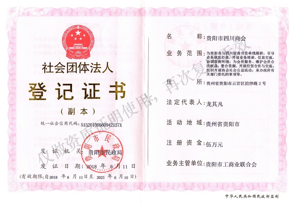 社会团体法人证副本